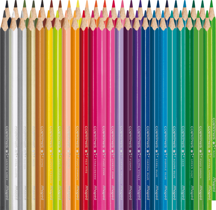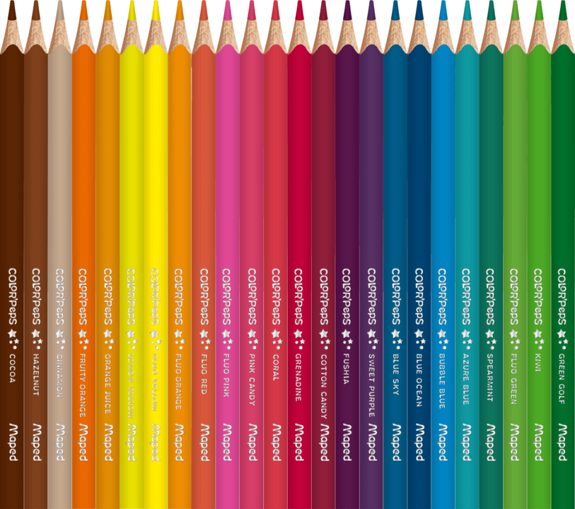 Los lápices de colores Color’Peps de madera son una gama de colores que acompañan a los niños en todas sus actividades: colorear y dibujar en casa, deberes y artes plásticas en la escuela. La forma triangular de los lápices de colores de madera ofrece un buen agarre al niño para colorear fácilmente y con mayor comodidad. Los lápices de colores Color’Peps son de gran calidad: su mina es resistente y se afila fácilmente.