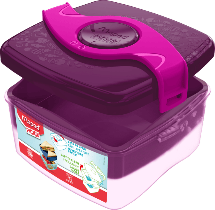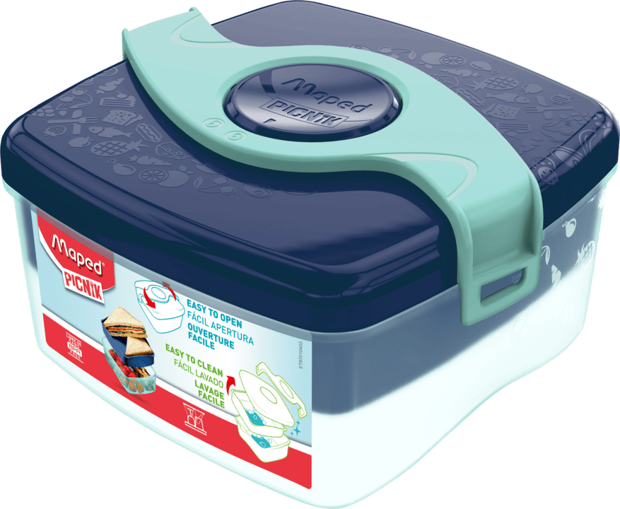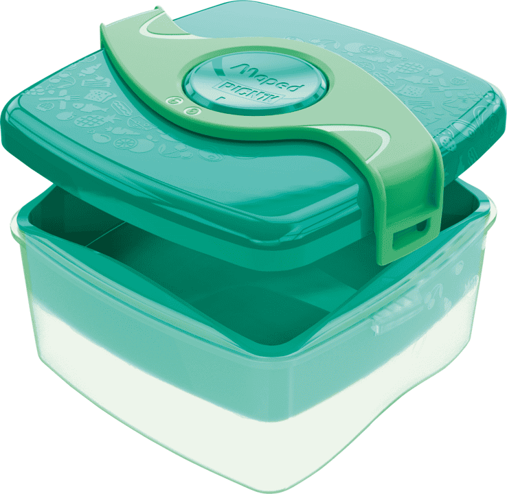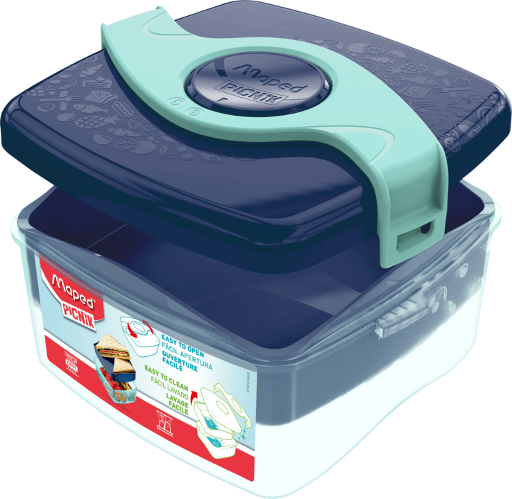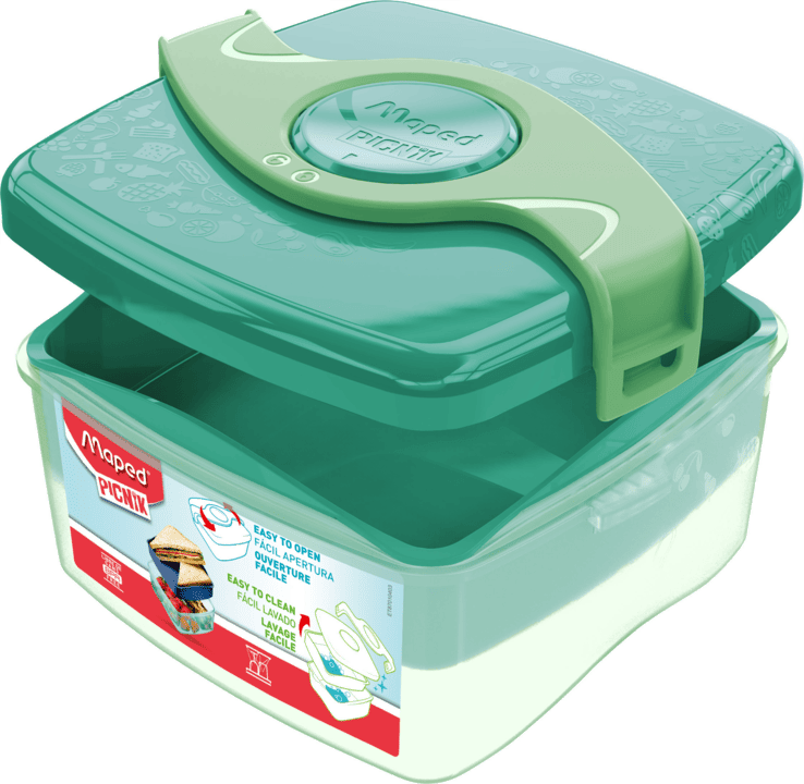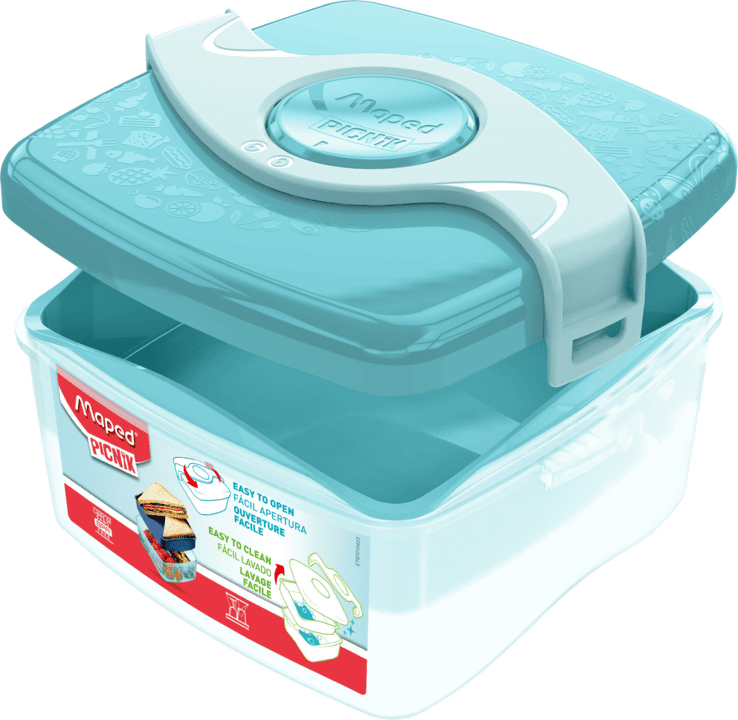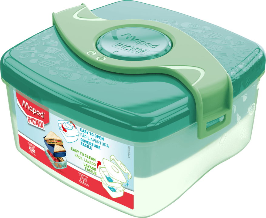 Esta innovación patentada permite al niño abrir su lonchera con un solo movimiento. La caja de comida es apta para microondas, teniendo cuidado de quitar la tapa. Todas las piezas son aptas para lavavajillas para una limpieza rápida y completa (la hélice es extraíble). Equipar a su hijo con una lonchera significa hacer algo por el medio ambiente, ya que la lonchera se puede reutilizar todos los días.