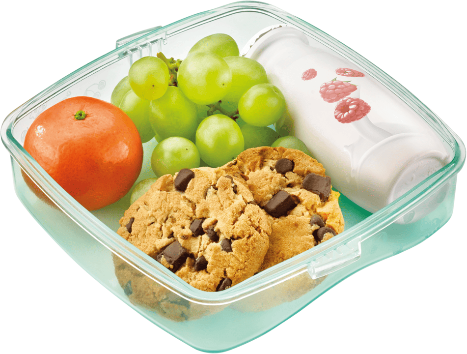 SNACK BOX: Caja de snacks compacta con capacidad de 520mL. Esta innovación patentada permite al niño abrir su lonchera con un solo movimiento.